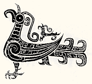 一、凤的神话和起源 古老的神话,常常是古代艺术衍生的土壤。中国最早的凤纹,也毫不例外地和中国远古代的神话有着密切的「血缘」关系。研究者对于这种相依的渊源关系,主要存在两种说法: 一是玄鸟图腾说。诗曰:「天生玄鸟,降而生商」,所谓玄鸟即是凤鸟。就是说天上神凤降临而商朝出现。凤鸟同龙蛇一样,是中国古代民族的图腾。新石器时期的原始社会彩陶上描绘的一些鸟纹,就是凤的形象的雏形(插图一、二、三)。