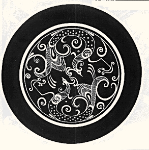 大概由于「五彩大鸟」的高度理想化,汉代的凤鸟纹样雄伟而不强悍。汉代凤纹的另一个显著特征是,按不同的装饰物应用而采用适合的造型,如汉代漆器上的凤纹样、汉代瓦当、画像石上的凤鸟纹样、与汉代青铜器上的凤纹样都具有不同的个性特色。即使是一方小小的「肖形印」凤纹图案(插图二九