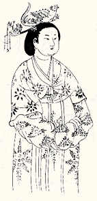 二、凤的传说 在神化过程中孕育成长起来的凤鸟,在装饰艺术领域里,并不完全象龙纹那样显得神幻莫测。在某种意义上。她比龙纹更接近自然形态而更富于人性化,具有一定的情感因素,人们在崇仰中更感亲近和喜爱。传说在很早以前,百鸟无忧无虑地生活在美丽的大森林里,天天欢乐歌唱。有一只羽毛朴素的、不受群鸟注目的小鸟,名字叫做凤凰。她不像其他鸟儿那样,只管玩乐,而是从早到晚忙碌着采集各种果实,还把别的鸟扔掉食物一起收藏在山洞里。喜鹊讥笑她是「财迷精」,乌鸦讽刺她是「小傻瓜」。但凤凰并不生气,日复一日,年复一年地辛勤操劳。后来,有一年发生了大旱灾,茂盛的森林也几乎枯萎,百鸟找不到食物,有的头昏眼花,有的气息奄奄……这时,凤凰把自己多年积存的食物,一一分给百鸟,终于使众鸟渡过了难关。百鸟感激凤凰的救命之恩,赞颂她的高尚情操,每只鸟都从自己身上选了一根最漂亮的羽毛,做成一件五光十色、绚丽耀眼的「百鸟衣」,献给了凤凰。从此,凤凰成了最美丽的鸟,并被推选为「百鸟之王」。每年凤凰生日,百鸟都要飞去向凤凰祝贺。「凤凰」从此成为世上美好事物和崇高赞美的象征,而「凤凰」的形象,进入了装饰艺术,给这领域增添了无比的光彩。《东周列国志》记载一则故事云:秦穆公有一女,名弄玉。姿容绝世,聪颖无比,善吹笙,不求乐师而自成音调。穆公令巧匠剖玉作笙,弄玉吹之,声如凤鸣。穆公乃为之修筑「凤楼」,楼前并建「凤台」。一夜,弄玉在「凤楼」见天净云高,明月如镜,乃取出玉笙临窗而吹,其声清悦,回荡天际,忽闻和声随风传来,若远若近,幽雅清奇。弄玉停笙而听,则和声亦随之而止。弄玉惘然,置笙就寝。夜梦西南天门洞开,霞光灿烂,一英俊男子戴羽冠,披鹤氅,骑彩凤自天而降;登凤台,对弄玉曰:「吾乃太华山之主,上帝旨,与你完婚,天缘也。」腰间解下赤玉箫,倚栏吹之,彩凤争翼鸣舞,凤声与箫声相和,弄玉不禁神思迷恋……。次日,弄玉禀穆公,令人到太华山寻萧史归。穆公请奏箫。萧史才吹一曲,清风熠熠,奏二曲,彩云四合;奏三曲,白鹤成对,翔舞空中;孔雀数双,栖集林际,百鸟鸣,经多时方散。穆公惊问原委,萧云:「箫声和美,极似凤鸣,凤乃百鸟之王,故百鸟皆闻声而翔集。昔舜作箫韶之乐,凤凰应声而来仪。凤凰且可来,何况其他鸟乎?」萧史、弄玉婚后,夫妻和睦,日居「凤楼」,渐不食人间烟火。萧史教弄玉奏「来凤」之曲。约半载,一夜,夫妇月下吹箫,有紫凤集于台左,赤龙盘于台右,于是萧史乘赤龙,弄玉乘紫凤,双离「凤台」翔云而去。汉代还流传一个故事:文学家司马相如,少年家贫。有一次被一个叫卓王孙的富商邀去饮酒,无意中发现卓王孙有一在家寡居的年轻女儿,叫卓文君。相如一见钟情,就弹起凤凰琴,唱起「凤兮凤兮归故乡,遨游四海求其凰」表示爱慕之情。卓文君听了十分感动,于是连夜随司马相如私奔,后结成夫妇。「凤求凰」一词,从此用来喻青年男女之间的爱情。大概是由于这些优美动人的故事传说,在装饰纹样上便出现了「吹笙舞凤」、「吹箫引凤」(插图八、九))、「鸾凤和鸣」、「鹤飞凤舞」(插图一○))、「百鸟朝凤」(插图一一)「龙凤呈祥」(插图一二)等一系列寓意吉祥的图案。凤纹形象已不再那么神秘朦胧和似是而非了,凤鸟图案已成为一种清新、生动、活泼的艺术形象,逐渐发展为民族装饰艺术的代表和象征之一。