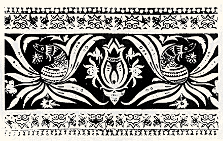 宋元两代的凤纹,同样具有各自的特点。自唐代以后,中国瓷器工艺的发达,使凤纹获得了更加广阔的发展天地。宋元两代凤鸟装饰纹样,都可以从瓷器上找到许多优秀作例。如宋代江西吉州窑凤菊纹瓷枕,元代的各凤纹罐和青花凤首壶,「凤喜牡丹」执壶纹样等(插图三四、三五、三六),都极为典型。宋代的凤纹,喜用柔和的线条,显示怡然自得的情调。宋代装饰艺术在观念形态上偏重寓意,凤鸟纹样便也多吉庆如意的民俗思想愿望和气息。如政和年间的「凤穿牡丹」图案(插图三七、三八)已渐渐地成为程式化的表现方式。