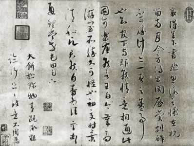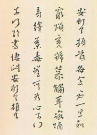 《思咏帖》书体属草书,共十行,字字独立而笔意暗连,用笔虚灵生动,精妙雅妍。通篇虽不及“茶”、“茗”一字,但其中蕴含的风流倜傥的人物形象,及其游戏茗事的清韵,则真是呼之欲出,袅袅不绝。